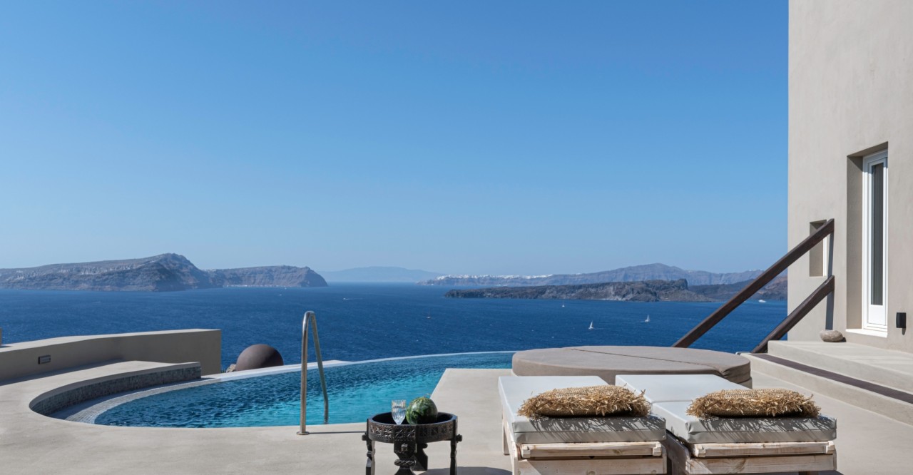◆ Luxury & intimacy: Stay together in a private luxury villa with infinity pool, jacuzzi, and breathtaking caldera views.